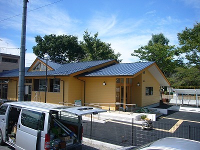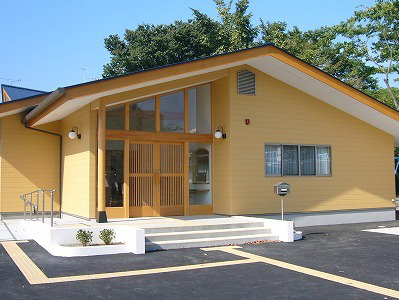 大きな丸太を使用した耐久性抜群の平屋の学童保育。