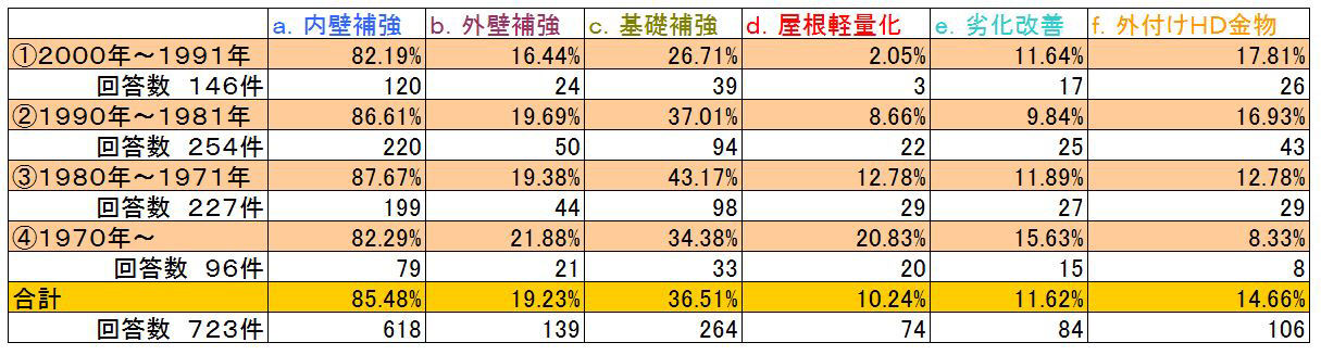 また、古い住宅ほど「屋根の軽量化」の実施率が高いことも分かりました。